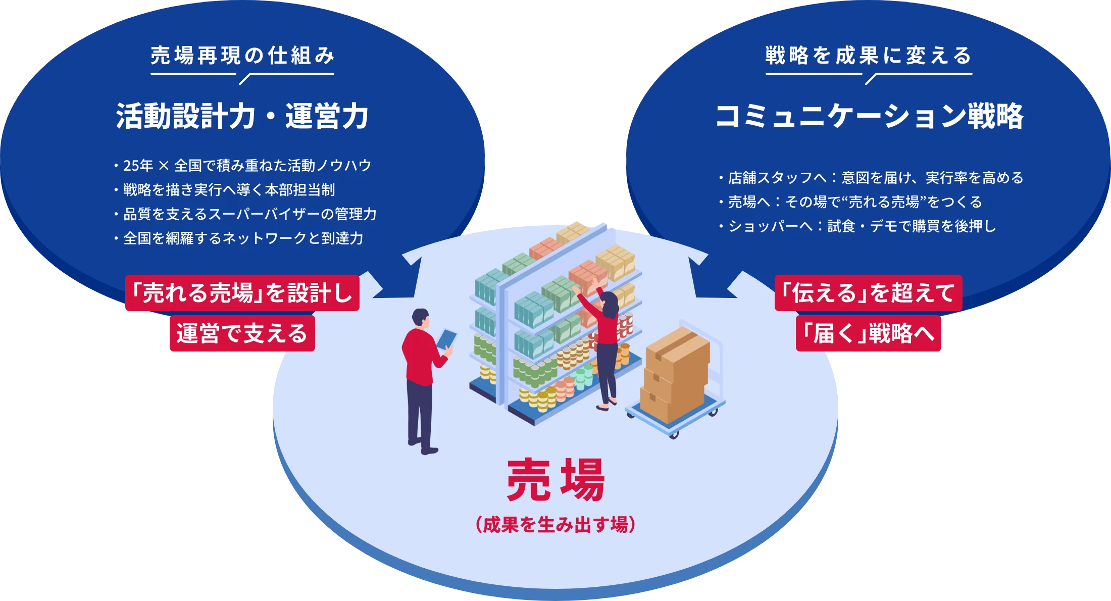 労務提供型の店頭応援で売場を支援。短期・スポットなど柔軟な対応が可能。